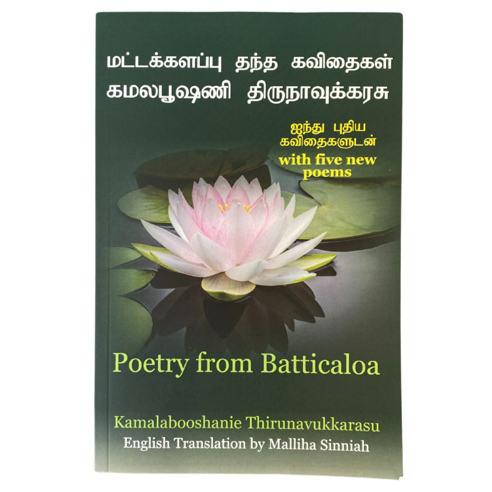 To purchase a copy of Poetry from Batticaloa with Kamalabooshanie’s original Tamil poetry with Malliha’s translation, please click on the link below.